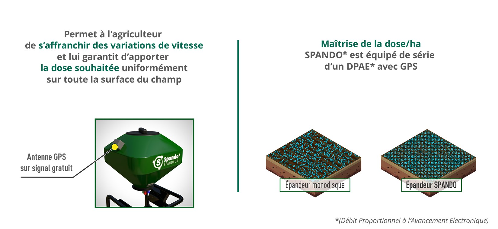 Le DPAE permet au SPANDO de délivrer la dose choisie quelle que soit la vitesse d’avancement.