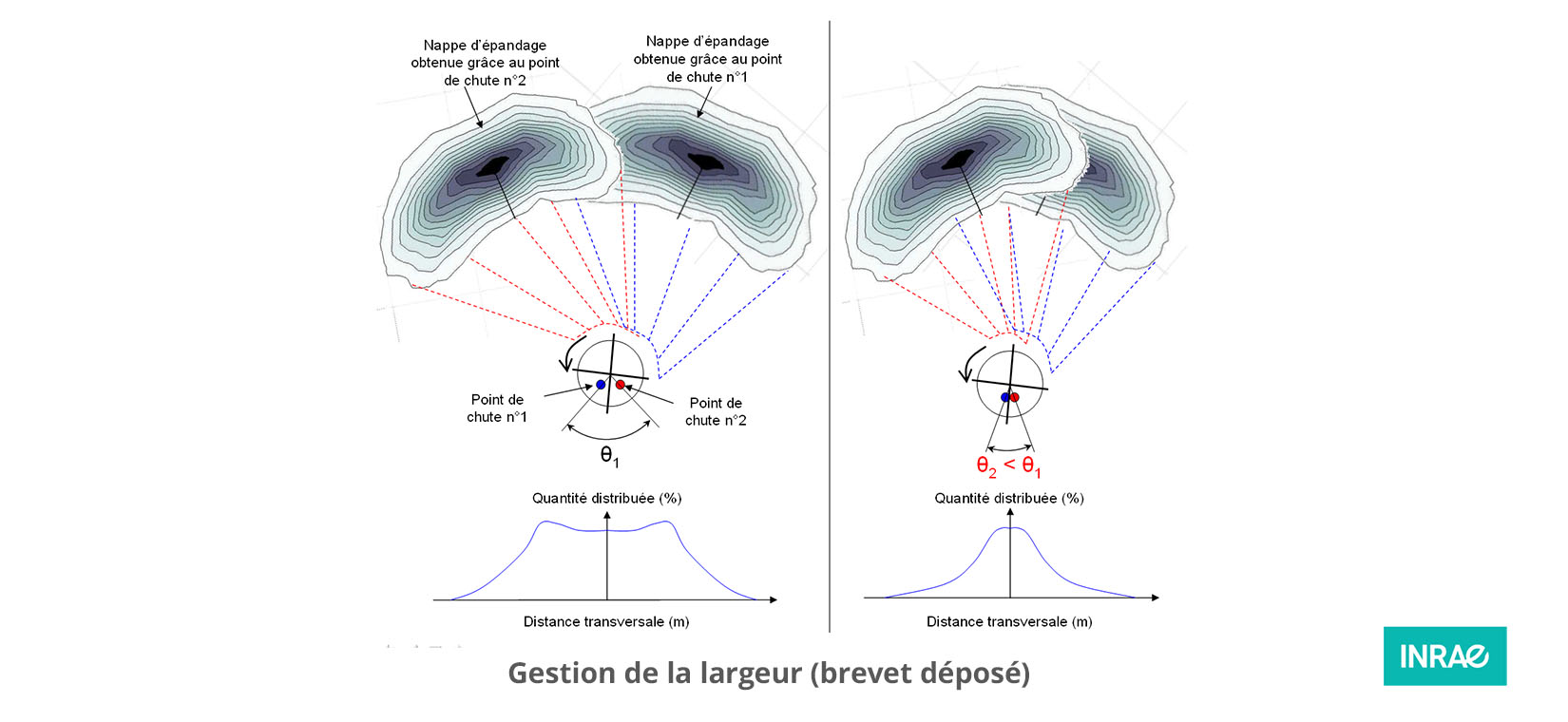 La gestion de la largeur est gérée par le rapprochement ou l’écartement des tubes d’alimentation du disque à vitesse de rotation constante.